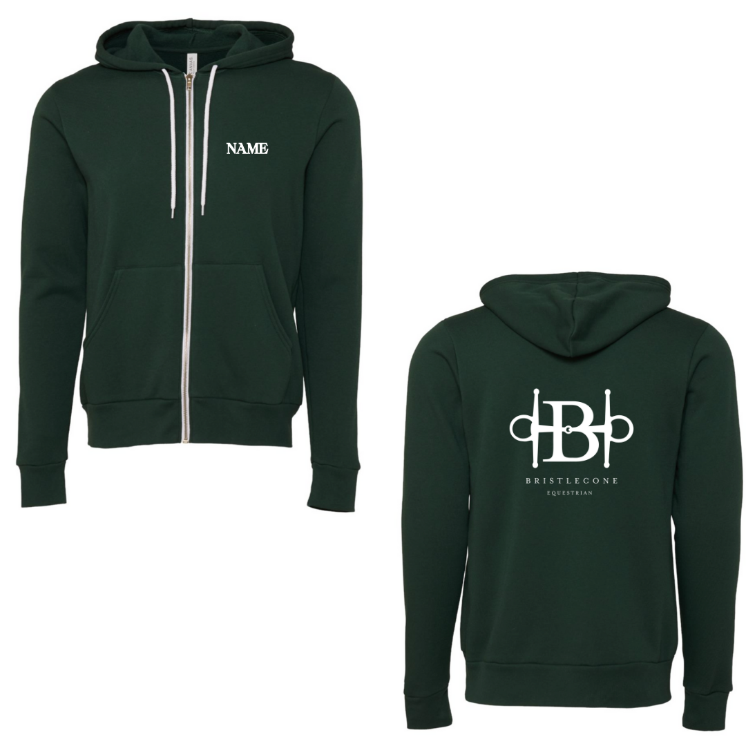 The softest sponge fleece zip hoodie with Bristlecone Equestrian & name on the left chest!